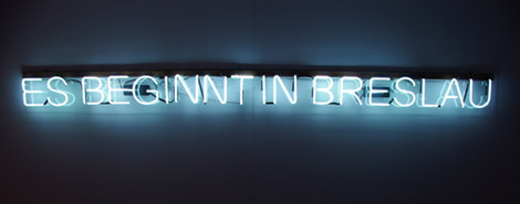 Rafał Jakubowicz, „Es beginnt in Breslau”, 2008, biały neon, 20x130x9cm, kolekcja Dolnośląskiego Towarzystwa Zachęty Sztuk Pięknych