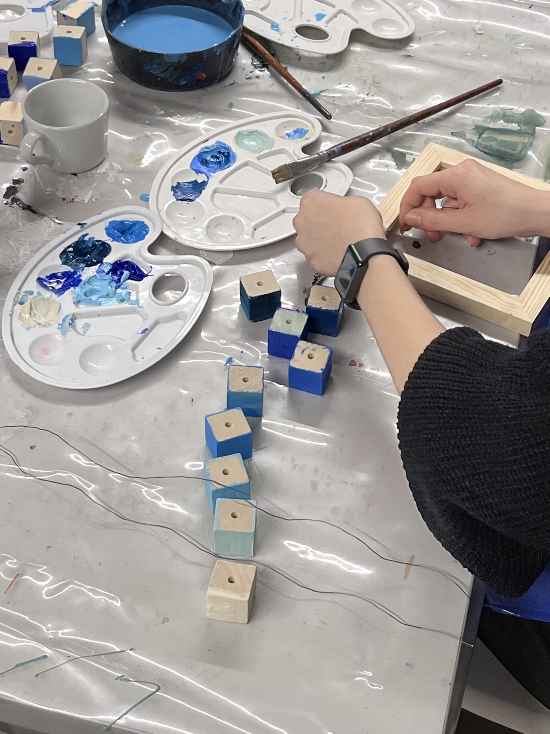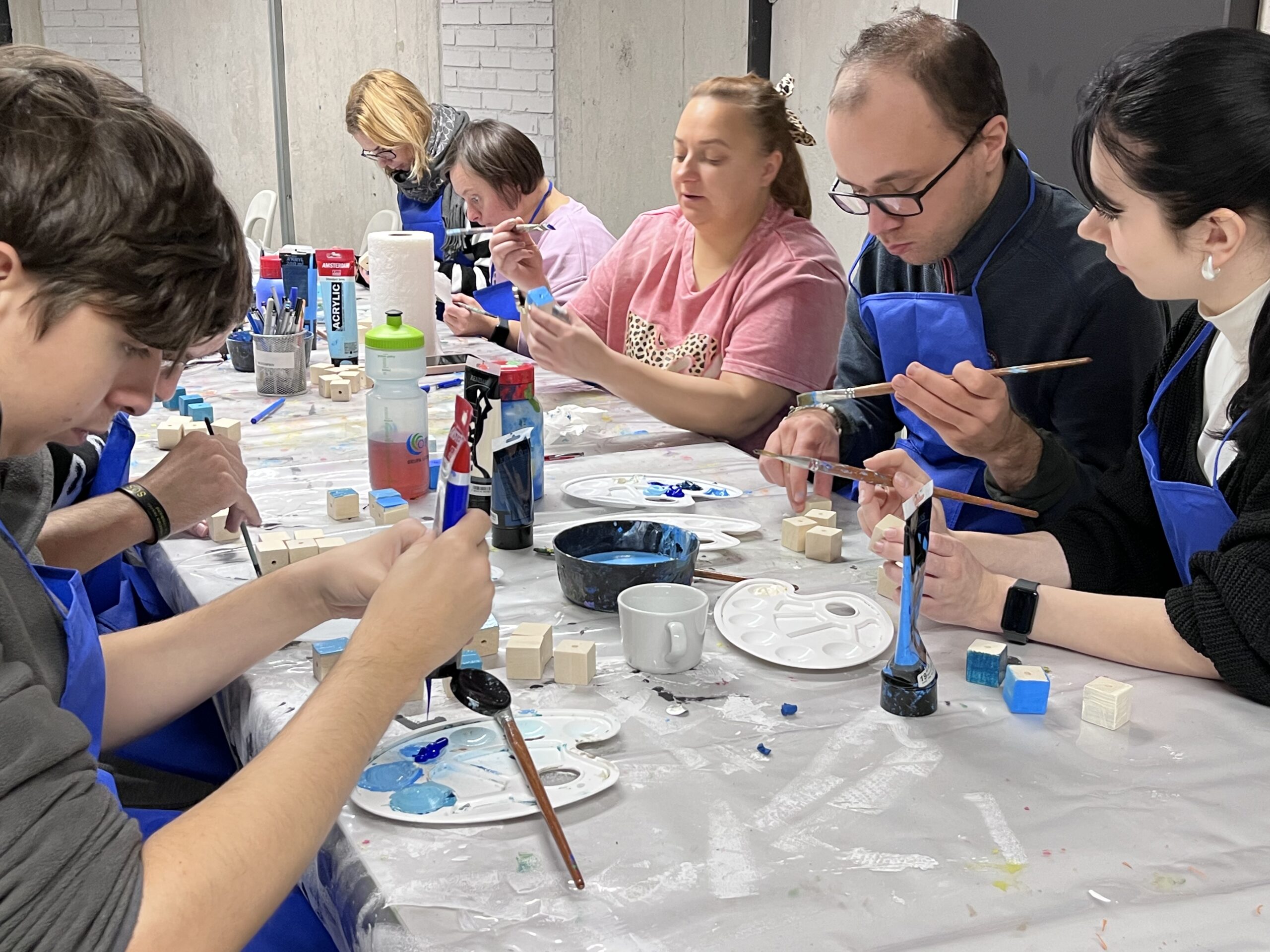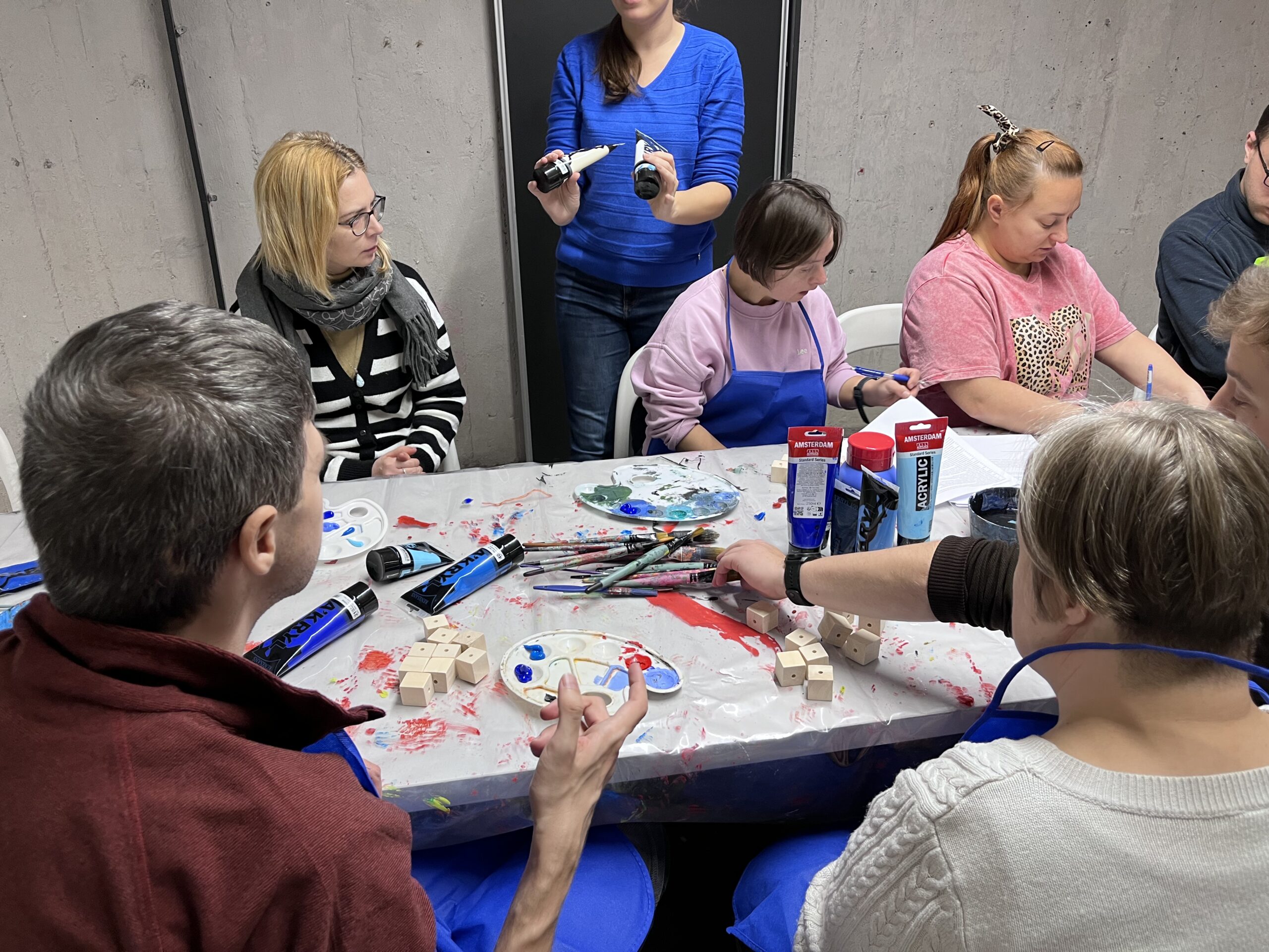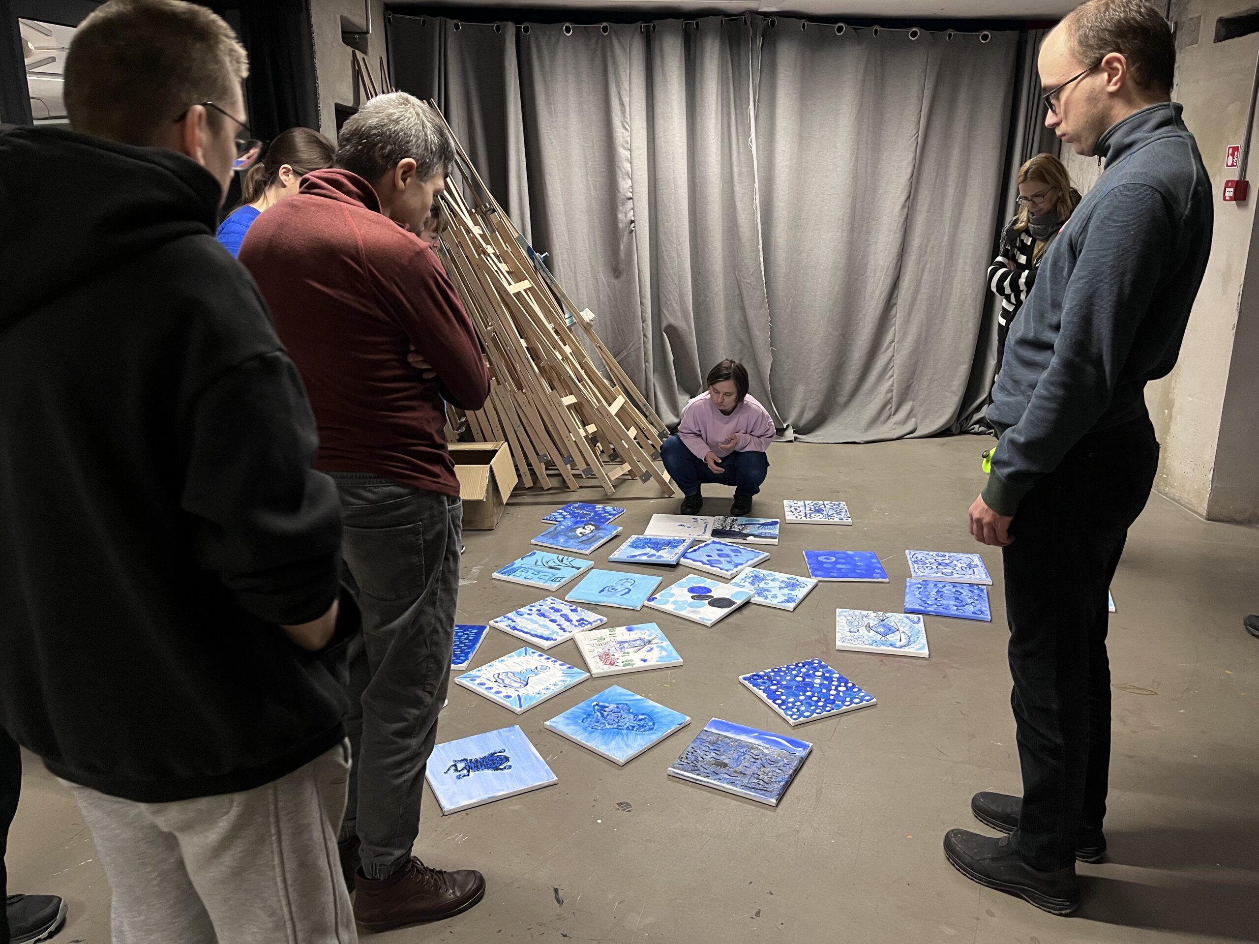 Podczas warsztatu spróbujemy wymienić jak najwięcej odcieni koloru niebieskiego. Odnajdziemy niebieski na kole barwnym i wykonamy próbki mieszania go z innymi kolorami. Obejrzymy też pracę z kolekcji Muzeum pt. „Kolekcja – katalog” Wandy Gołkowskiej. Obraz składa się z 400 ponumerowanych kwadratów w odcieniach błękitu, zieleni, fioletu i szarości. Barwa zostaje tu oderwana od przedstawienia – traktowana jak zestaw unikalnych danych. W czasie warsztatu ułożymy wspólnie wzór, który będzie zawierał największą możliwą ilość odcieni niebieskiego. Zobaczymy jak powstaje wyjątkowa mozaika!