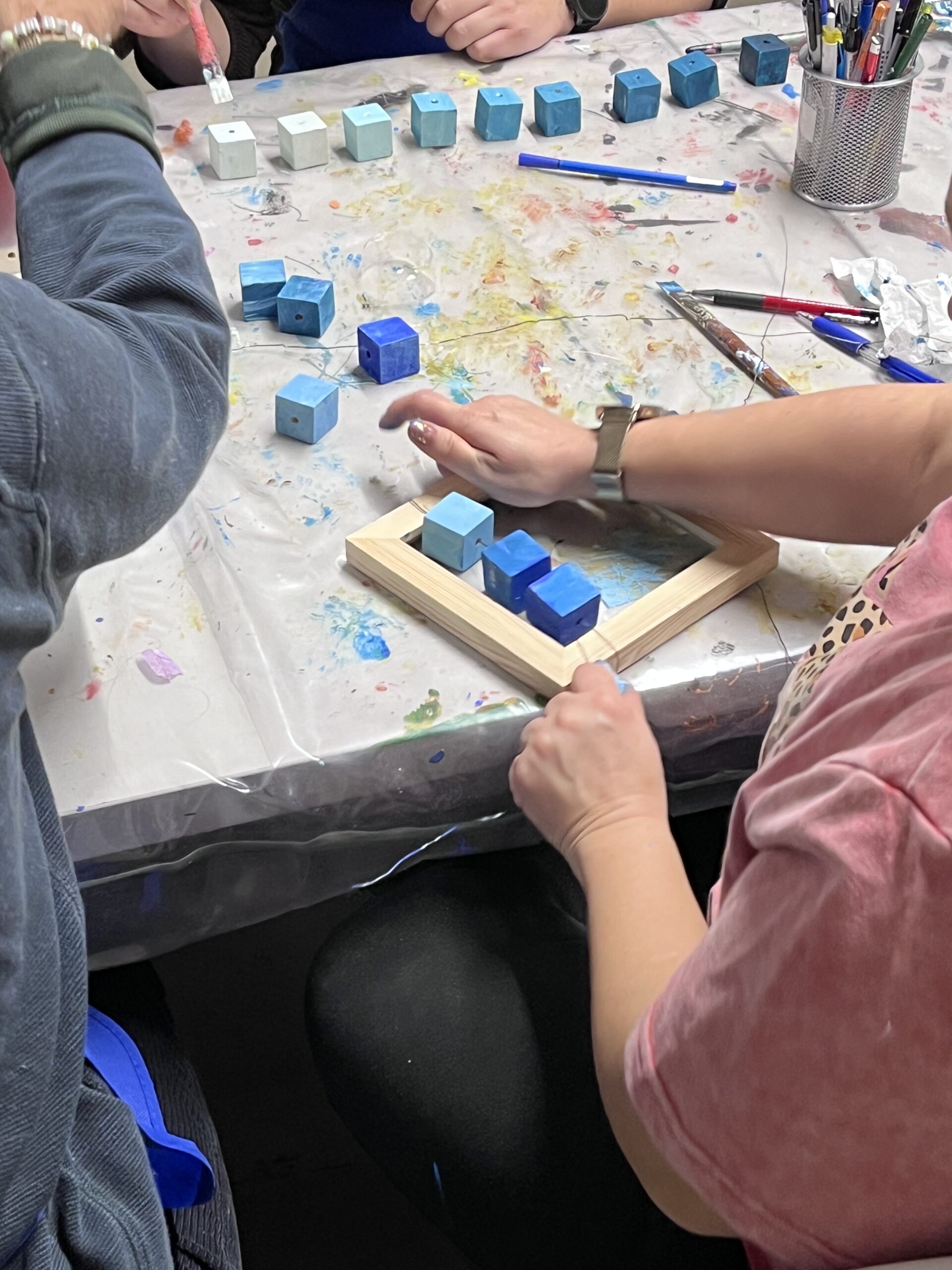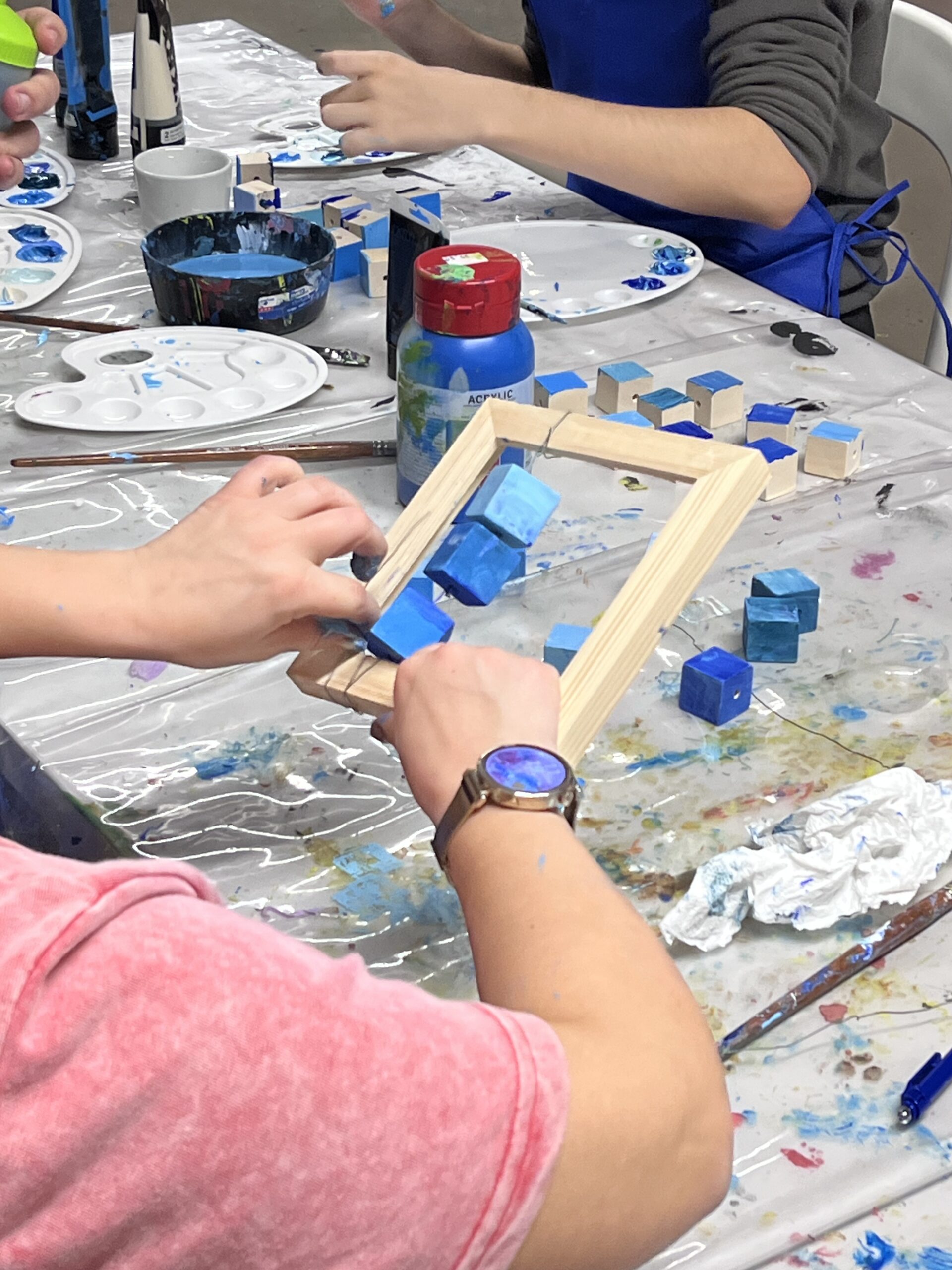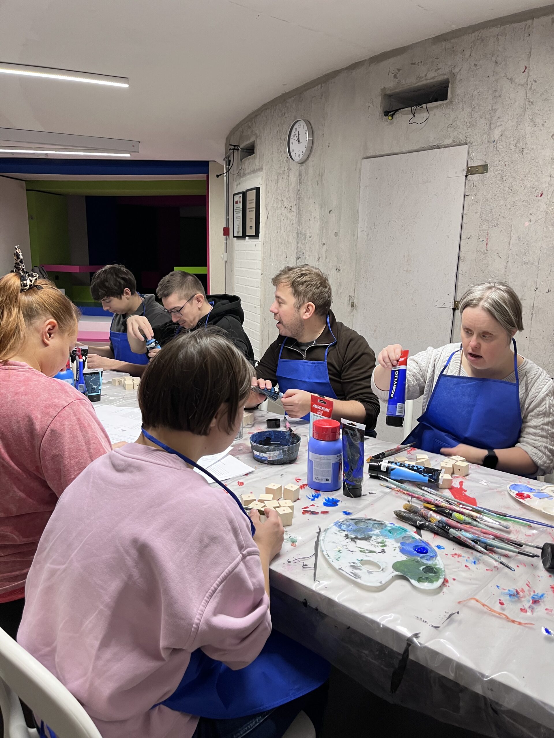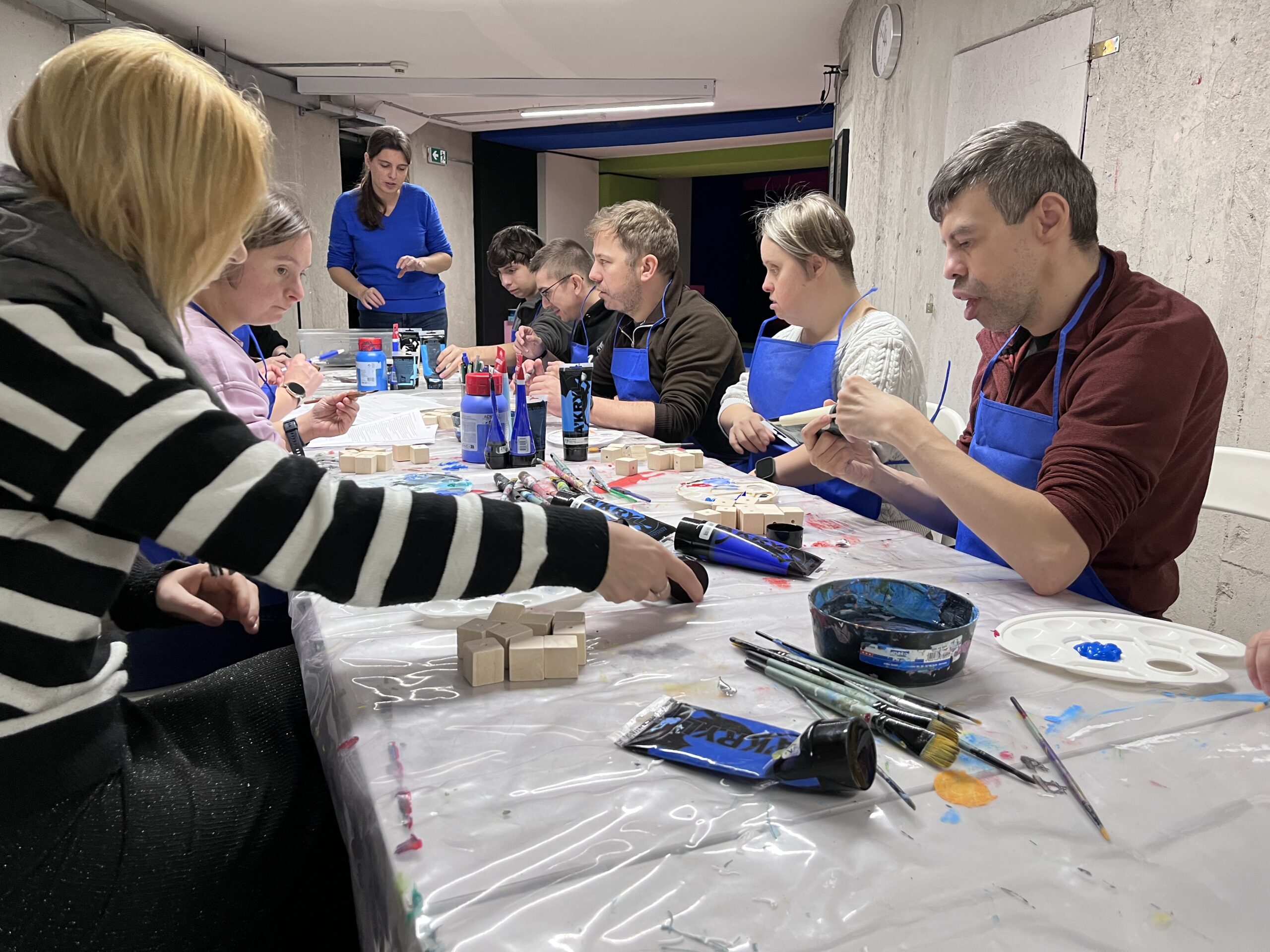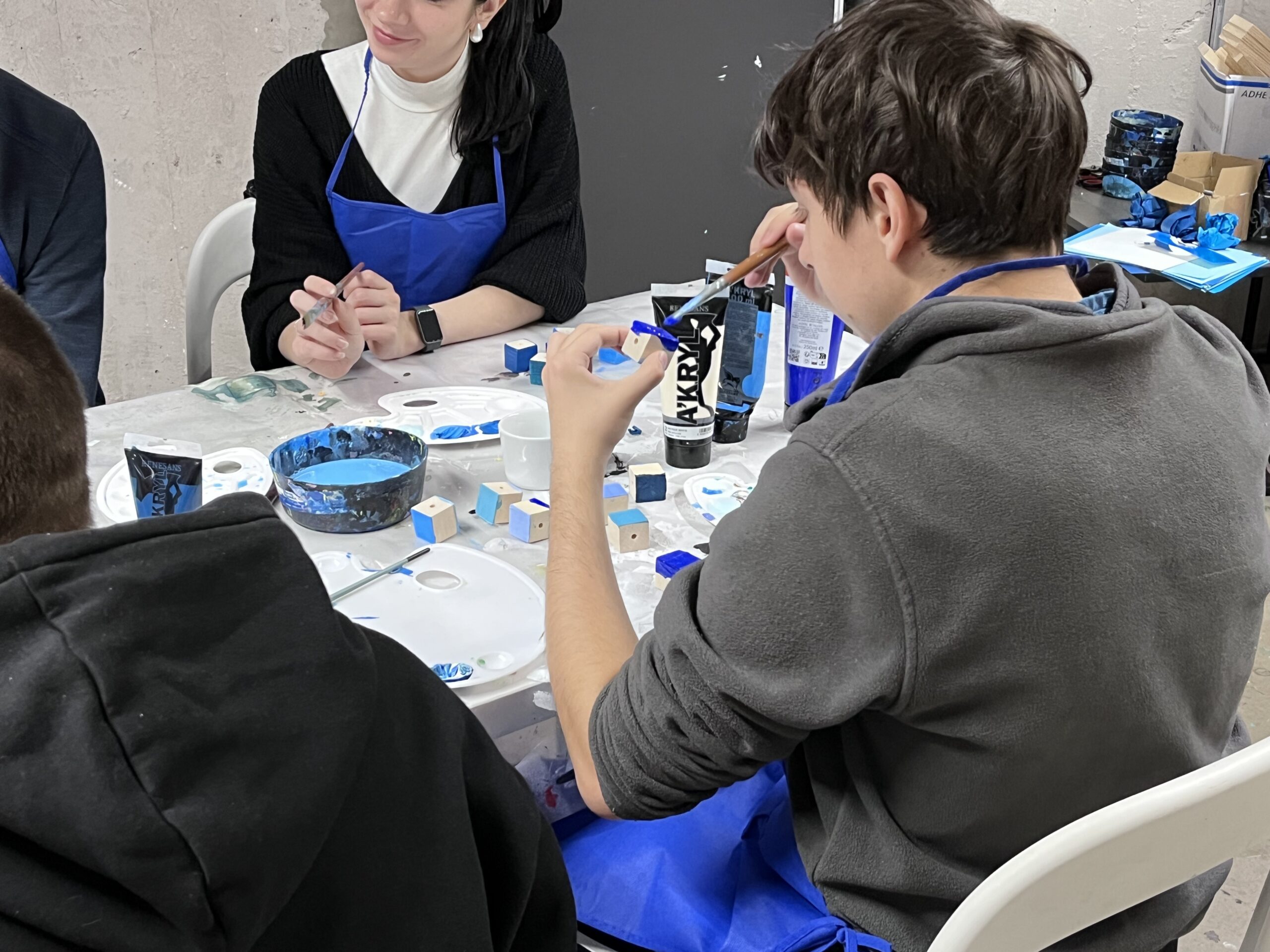 Podczas warsztatu spróbujemy wymienić jak najwięcej odcieni koloru niebieskiego. Odnajdziemy niebieski na kole barwnym i wykonamy próbki mieszania go z innymi kolorami. Obejrzymy też pracę z kolekcji Muzeum pt. „Kolekcja – katalog” Wandy Gołkowskiej. Obraz składa się z 400 ponumerowanych kwadratów w odcieniach błękitu, zieleni, fioletu i szarości. Barwa zostaje tu oderwana od przedstawienia – traktowana jak zestaw unikalnych danych. W czasie warsztatu ułożymy wspólnie wzór, który będzie zawierał największą możliwą ilość odcieni niebieskiego. Zobaczymy jak powstaje wyjątkowa mozaika!