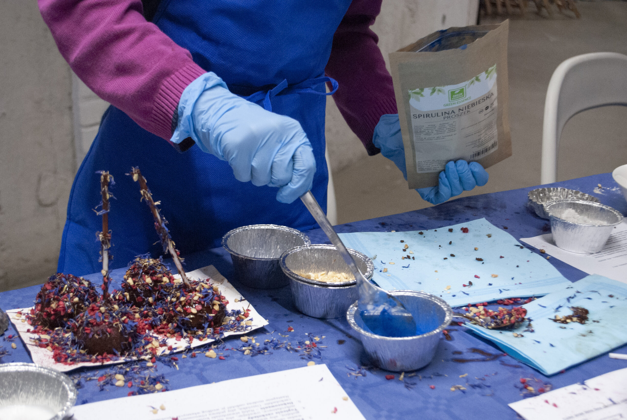 -> Gotować i piec – wspólnie stworzymy desery: babeczki kokosowe z jagodami, tartaletki z kremem kokosowym barwionym spiruliną oraz energetyczne „kulki mocy” w kolorowych posypkach.